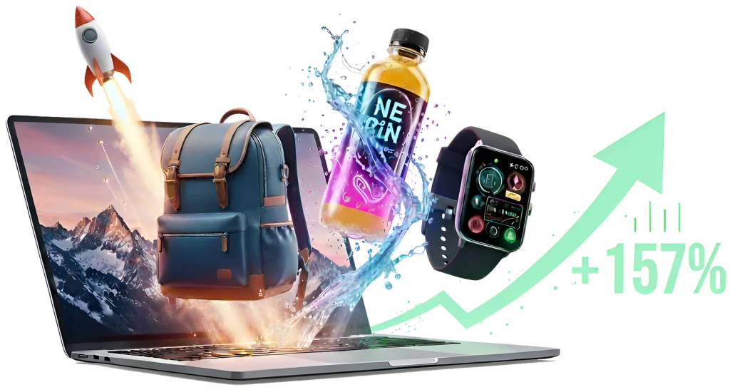 Fiche produit, campagne ads ou packshot — tout part d’un simple clic.